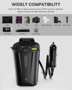 مثالي لتغذية مجموعة واسعة من الأجهزة، مثل آيفون، الحواسيب المحمولة، مضخات الحليب، أجهزة CPAP، أجهزة النيبوليزر، أجهزة الألعاب، وغيرها من الأجهزة الإلكترونية. سواء كنت مسافرًا، في رحلة تخييم، أو في حالة طوارئ، هاد الانفيرتر كيوفر الطاقة للأجهزة الأساسية ديالك، فين ما كنت وفي أي وقت